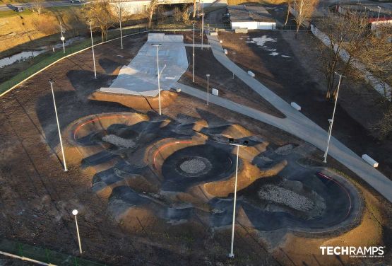 La deuxième installation située à Chojnów est un pumptrack en asphalte avec une surface de route de 308 m2. Pumptrack a été conçu et fabriqué pour les joueurs débutants et intermédiaires, mais même un joueur avancé pourra s'amuser dessus. Pumptrack a été conçu pour qu'il soit possible de conduire différentes lignes dans chaque direction et de lui permettre de passer toutes les lignes possibles en un seul passage.