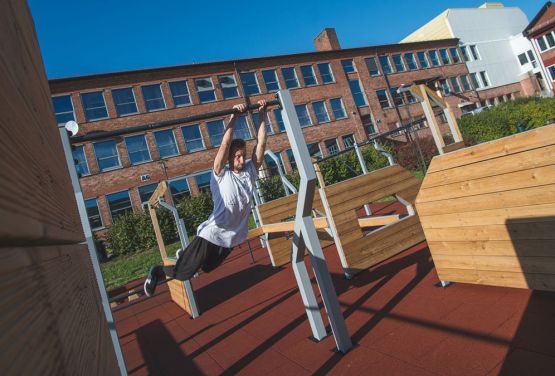 Le parc de la ville norvégienne de Glemmen diffère visuellement de nos autres projets. Dans la mise en œuvre Une structure grise avec des éléments en bois a été utilisée. Tous les éléments ont été laissés sur la surface durcie. Il s'agit d'un FlowPark grand et varié, où vous pouvez pratiquer à la fois un entraînement de rue et un parkour.