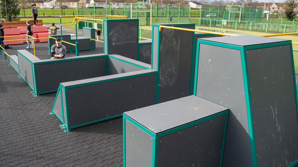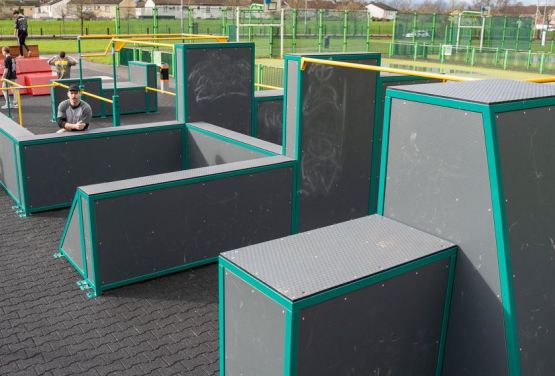 Parkour Park à Dublin est un projet réalisé avec la technologie Simple XL dans la version Prestige. Il a été conçu en tenant compte des rigueurs du climat irlandais et les éléments terminés sont garantis jusqu'à 10 ans.