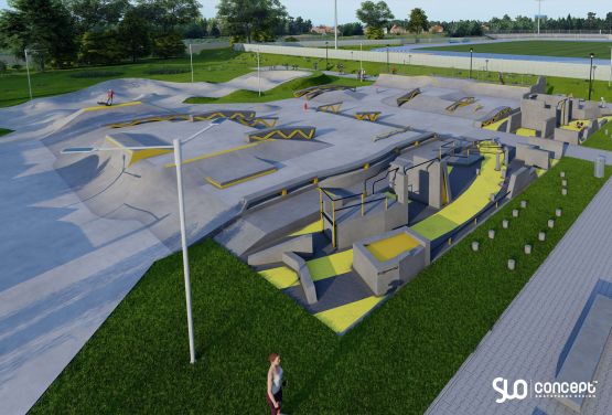 Découvrez le dernier projet de skatepark en béton de Slo Concept à Minsk Mazowiecki ! Le complexe comprendra également un Pumptrack et une section skatepark de Techramps, ainsi qu'une section Parkour Park de Flowparks. En outre, l'ensemble de l'installation sera éclairé et la zone adjacente au parc sera dotée d'une petite architecture. La surface de l'ensemble de l'installation est de 2119 m2 !